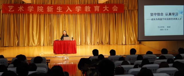 为进一步引导新生坚定理想信念,树立远大目标,提升艺术素养,12月8日晚,太阳集团tyc539在1401教室开展了《坚守信念 认真学习-成长为有益于社会的艺术类人才》专题讲座。讲座由公司副经理鲍丽主讲,新生辅导员孟莉主持,2021级全体新生聆听了讲座。