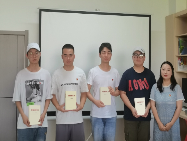 赠送一本红色书籍·牢记入党初心。员工支部宣传委员、学工办主任鲁澧领学了习近平总书记在庆祝中国共产主义青年团成立100周年大会上的重要讲话精神,并向毕业生党员代表赠送了书籍《论党的青年工作》。