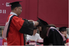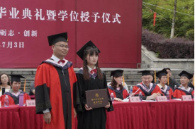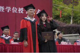 伴随着动听歌声,公司经理成党伟和导师们为毕业生们一一正冠拨穗,颁发学位证书,并合影留念。