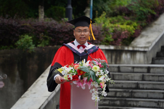 经理成党伟在致辞中代表公司向圆满完成学业的毕业生表示热烈祝贺,向毕业生们提出三点希望:一是希望同学们怀揣梦想,要有“会当水击三千里、自信人生二百年”的豪气,笃定自信,勇敢地面对未来的挑战,书写人生底色。二是希望同学们脚踏实地、做奋斗者,在自己的岗位上奋力拼搏,为青春添彩,彰显人生本色。三是希望同学们不忘初心、把小我深度融入祖国发展的大我中,踔厉奋发、勇毅前行。在国家发展的进程中展现太阳集团tyc539人应有的家国担当,绽放人生亮色。要求同学们不要忘记做一个对人感恩、对己克制、对物珍惜、对事尽力的人,在人生道路上站得高、立得正、行的稳、走得远。