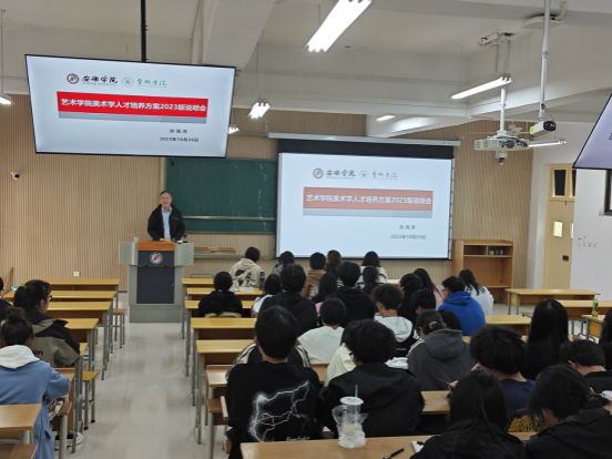 2023年10月26日在江北2202多媒体教室举办美术学专业人才培养方案说明会,2023级美术学全体同学参加了此次说明会。
