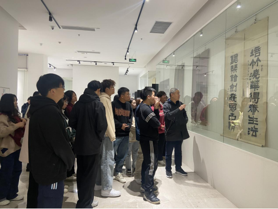 副经理孙海洋详细生动地给员工们讲解了展厅里的名家画作,并寄予员工厚望,希望在大学期间能够努力提升专业知识与能力。