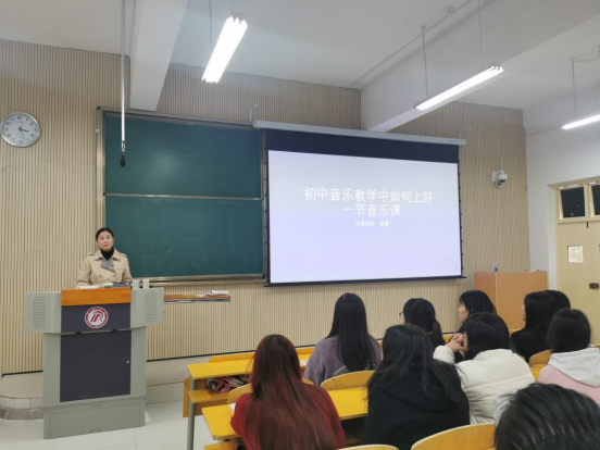 11月9日,太阳集团tyc539邀请陕西省教学能手、安康汉滨高中永红校区高级教师林繁,汉滨初中区级优秀教师、教学能手井莹两位老师在江北校区2202教室为第二届“中学音乐卓越教师培养班”做讲座。音乐系主任肖剑、教师代表鄢志莉及音乐学专业百余名员工参加了本次活动。