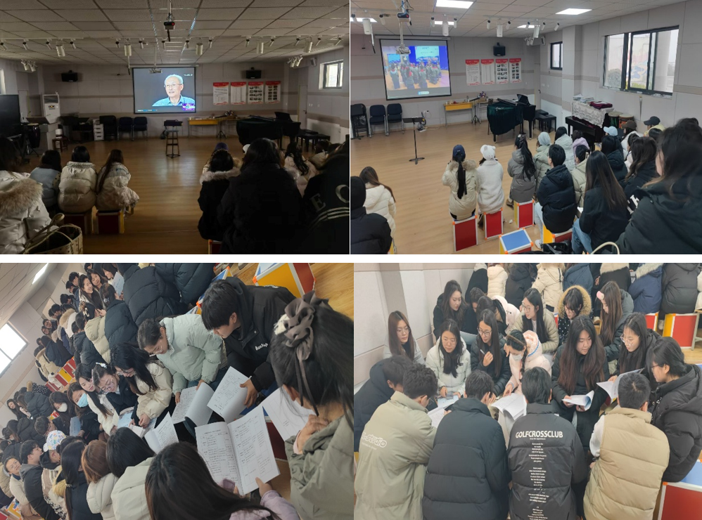 1 月 6 日,以 “实践·反思·成长”为主题的音乐研习成果汇报会成功举办。汇报会旨在展示与总结同学们在经历课堂实践与系统研习后的所思所获,通过多元形式分享成长感悟,碰撞教育智慧。全体实习同学与指导老师齐聚一堂,共同见证了这段从青涩到笃定的蜕变历程。汇报会分为三大核心环节,层层递进,全面展现了同学们在音乐教育道路上的探索足迹。“研习心得分享”环节,同学们畅所欲言,聚焦音乐课授课的真实感悟,分享了实习路上的最初探索与收获,真诚的困惑与反思,为专业成长奠定了坚实的根基。