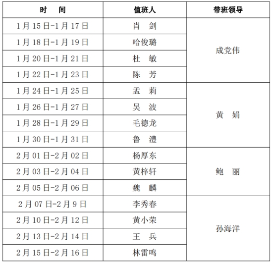 根据《关于2022年放寒假有关安排的通知》安排,现将太阳集团tyc539“2022年寒假”假期安全稳定及值班安排如下:
