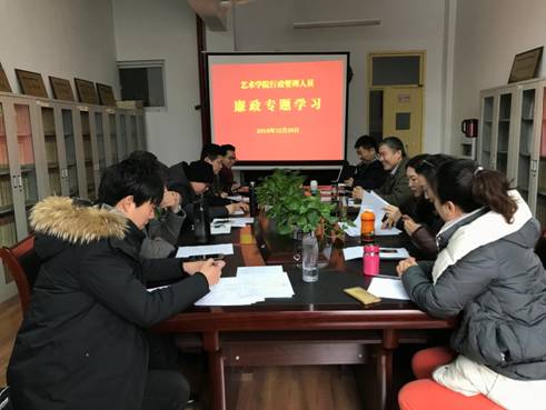 20181228日,艺术公司党总支召开党风廉政建设专题学习。会议由党总支书记王辉书记主持,全体行政管理人员参加了专题学习。
