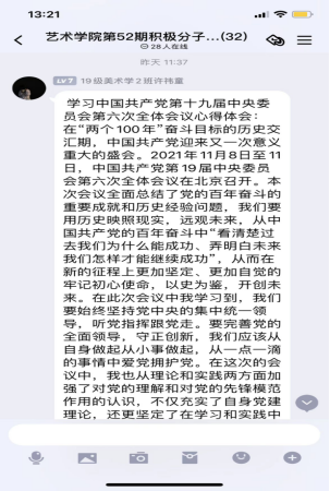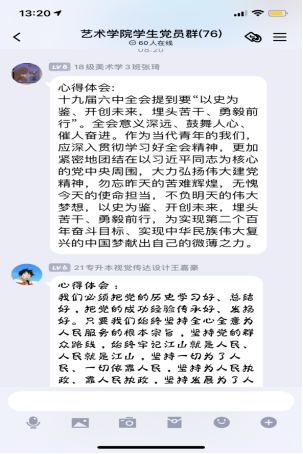党课结束后,同学们纷纷表示要把总书记重要讲话精神和十九届六中全会精神,学习好、领会好、贯彻好,做到学思践悟、学通弄懂、学以致用,在本职学习和工作上埋头苦干、勇毅前行,将以中国梦为奋斗主线,将爱党、爱国和爱校融入青春成长,并为成长不断增添绚丽色彩。