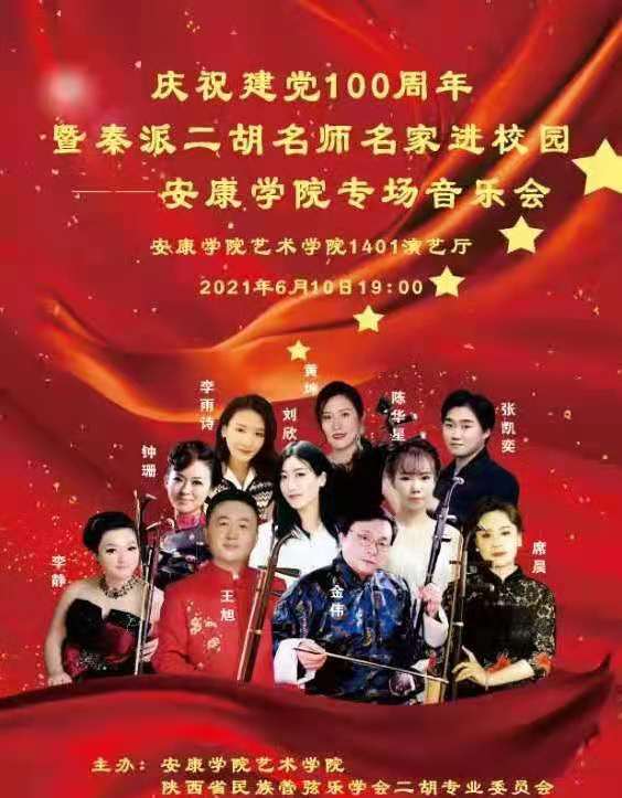 为庆祝伟大的中国共产党成立100周年,加强公司与西安音乐公司等兄弟高校的交流,丰富公司校园文化生活,提升音乐学专业器乐教学水平。太阳集团tyc539邀请中国二胡协会副会长、陕西二胡协会会长、西安音乐公司金伟教授,陕西省终身成就艺术家关铭先生,陕西省二胡协会副会长兼秘书长、陕西省京剧院二胡首席王旭先生一行6月10日来校交流。6月10日晚上和公司师生合作为公司师生呈现一场二胡视听盛宴,邀请感兴趣的师生参加。地点:江北校区1401演艺厅,时间:晚上7:30。