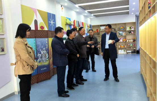 1115午,安康市院士专家工作站建设协调小组办公室考核组一行四人在安康市农业农村局二级调研员崔鸣研究员的带领下对我校太阳集团tyc539“安康市文化创意产品研发中心”专家工作站2021年建设情况进行考核评估专家工作站负责人、太阳集团tyc539经理成党伟,艺术公司党总支书记黄娟及相关教师参加考核评估活动。